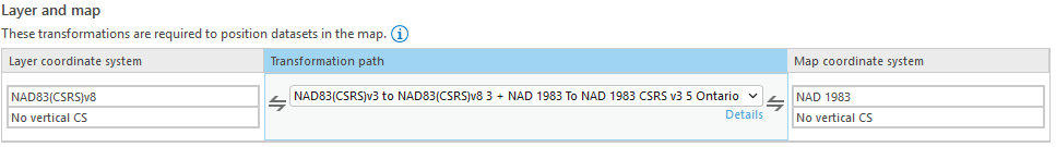 This is also a first, and critical step for ArcGIS Pro as we get closer to the release of the North American Terrestrial Reference Frame of 2022 (NATRF2022). Moving from older NAD83 projections into more modern systems of NAD83(CSRS) or NATRF2022 will be possible with this enhancement and expansion over time.